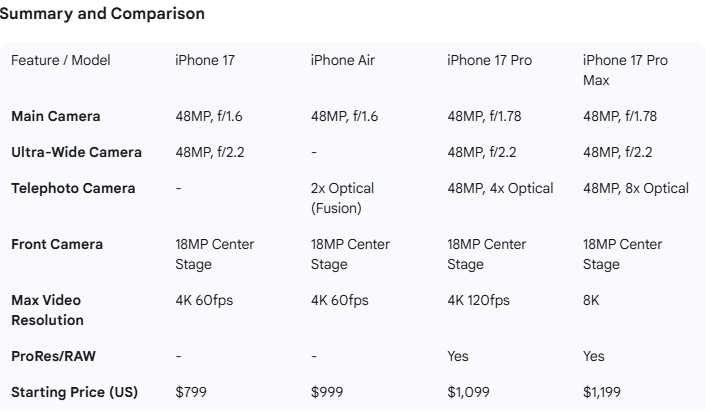 A Deep Dive into the iPhone 17 Lineup: Camera Systems and Value Proposition